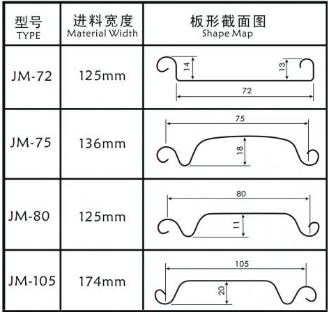 เครื่องขึ้นรูปม้วนหลังคาแบบคานตั้งมีสองประเภท คือ แบบตรงและแบบเรียว นอกจากนี้ เรายังสามารถเปลี่ยนสเปเซอร์ลูกกลิ้งเพื่อเปลี่ยนขนาดผลิตภัณฑ์ได้อีกด้วย