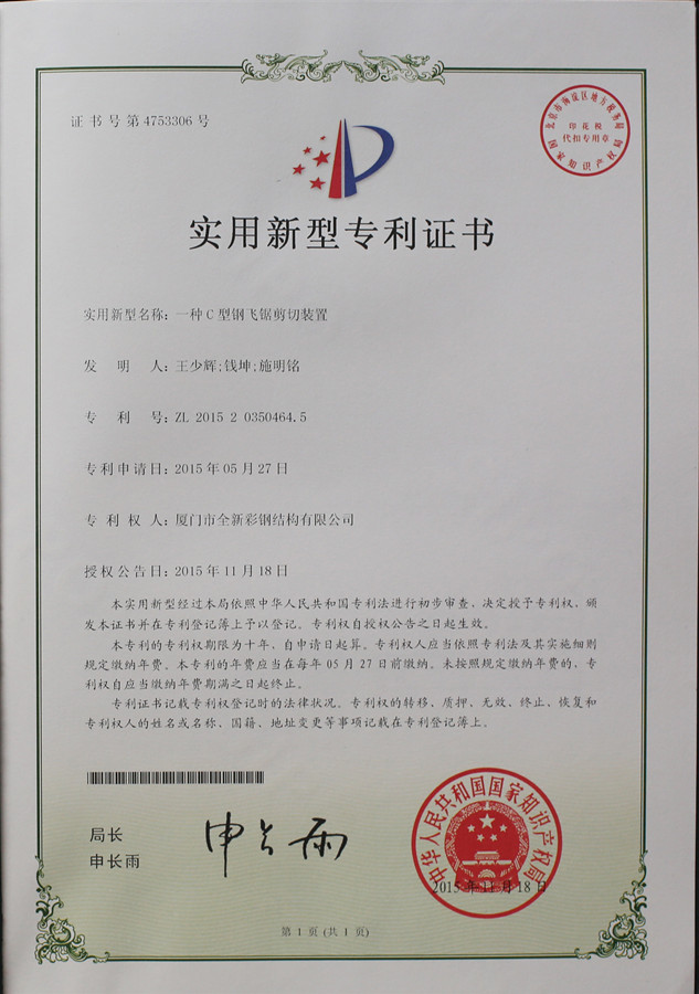 ใบรับรองสิทธิบัตรเครื่องตัดเลื่อย