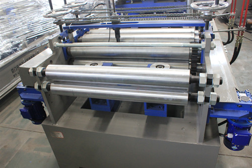 ลูกกลิ้ง 2 ลูก (ลูกกลิ้งขึ้น 1 ลูก และลูกกลิ้งลง 1 ลูก) สำหรับนำวัสดุ และลูกกลิ้ง 5 ลูก (ลูกกลิ้งขึ้น 2 ลูก และลูกกลิ้งลง 3 ลูก) สำหรับการยืดตรง